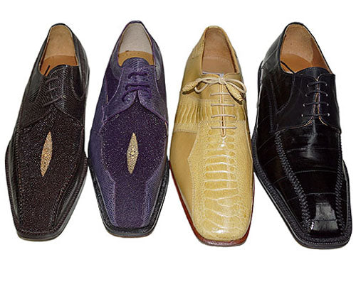 Skin: Stingray/Lizard Colors: Brown Colors: Purple Colors: Bone (Ostrich Leg/Leather) Colors: Black (Eel)